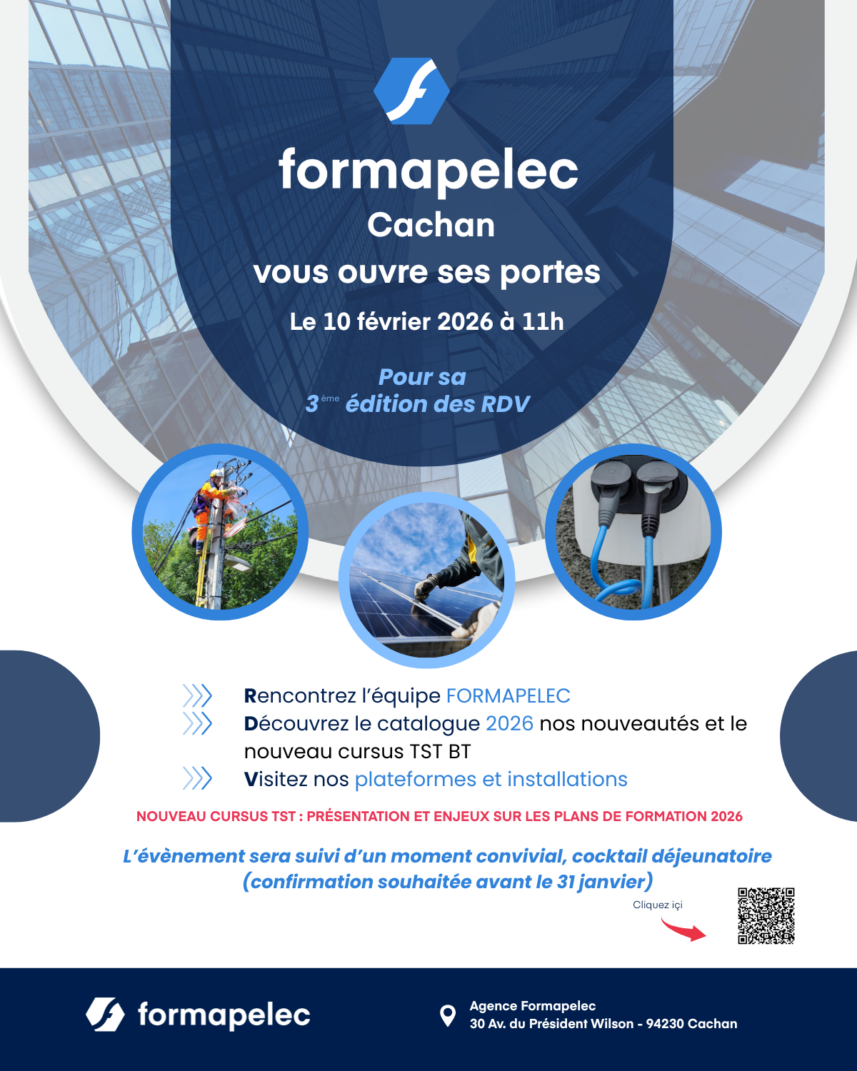 Une occasion spéciale pour découvrir les plateaux techniques et rencontrer les équipes de Formapelec. Trois journées sont prévues dont une sur le site de Cachan (94) le 10 février à partir de 11 heures.